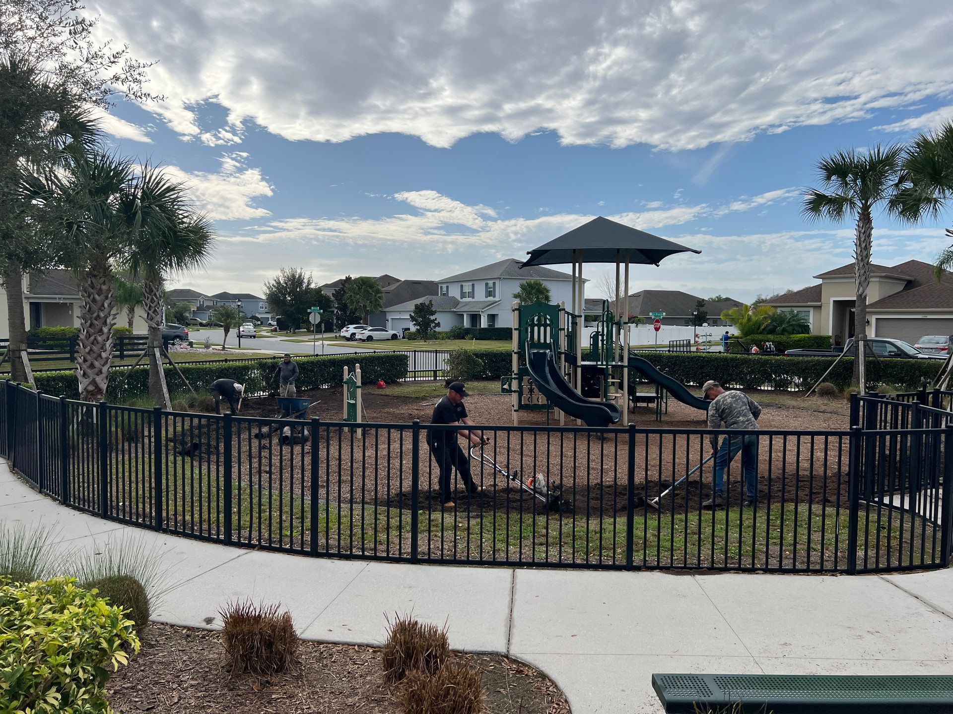 - Toddler Area Flooding Solution: Installed a French drain, regraded the area, and added new mulch to address flooding issues. A resident landscaper carried out this project. Reminder: Monitor your kids to keep the mulch inside the lot and not on the slides.